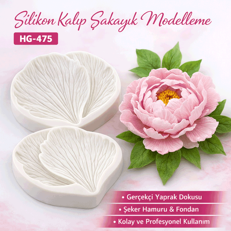 Gelince Haber VerSilikon Kalıp Şakayık Modelleme HG-475, pasta ve tatlı dekorasyonlarında gerçekçi çiçek detayları oluşturmak için kullanılan profesyonel bir modelleme kalıbıdır. Şakayık çiçeği yaprak damarlarını detaylı şekilde çıkarabilen özel tasarımı sayesinde şeker hamuru ve fondan çalışmalarında mükemmel sonuçlar elde edilmesini sağlar.