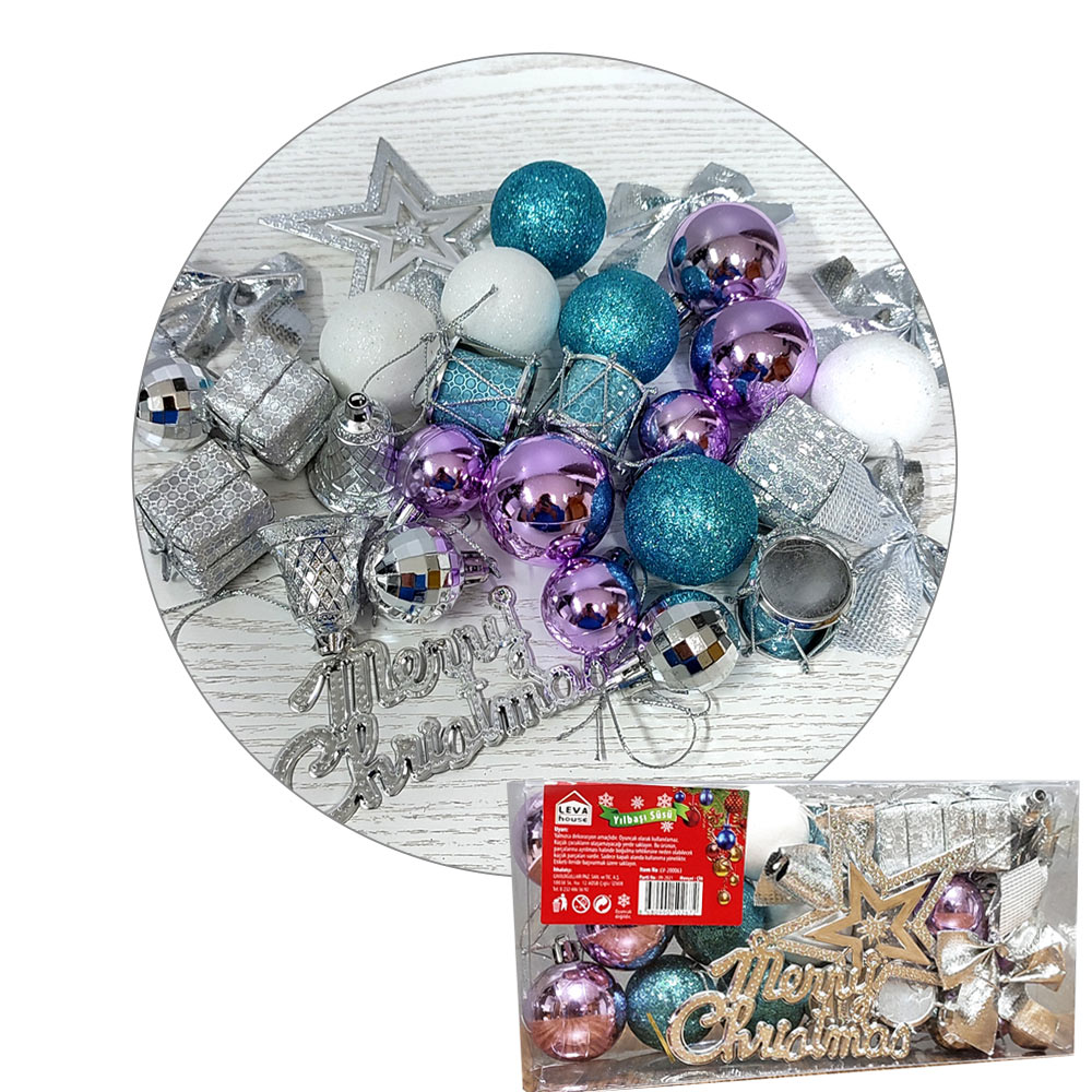 YB' AĞAÇ SÜSLEME SETİ 29 PARÇA GÜMÜŞ LV200063